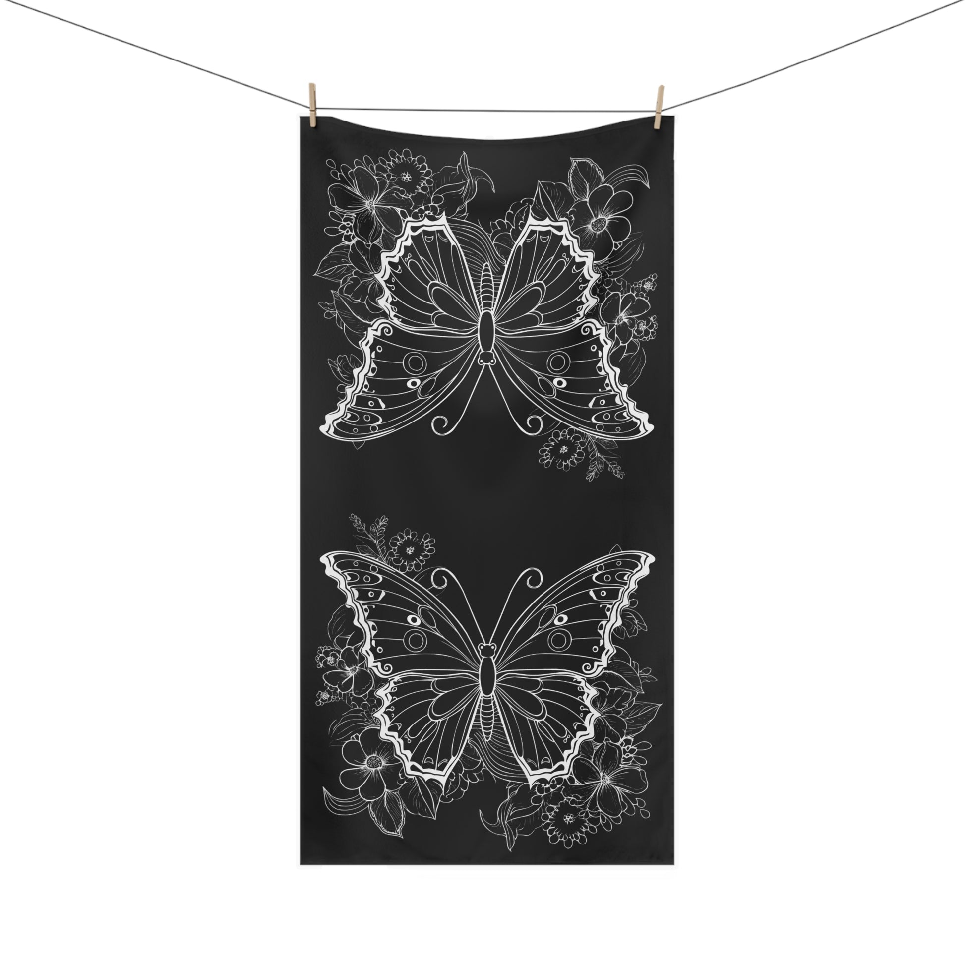 This butterfly bath towel comes to enrich both your daily bathing rituals and your sunny days by the coast. The front side, where your print goes on with vivid details, is made with a luxuriously soft polyester mink. The backside is exceptionally silky and absorbent cotton. Do we hear animal print beach towel? Why not, add your designs on this 30”x 60” towel and make it unique.