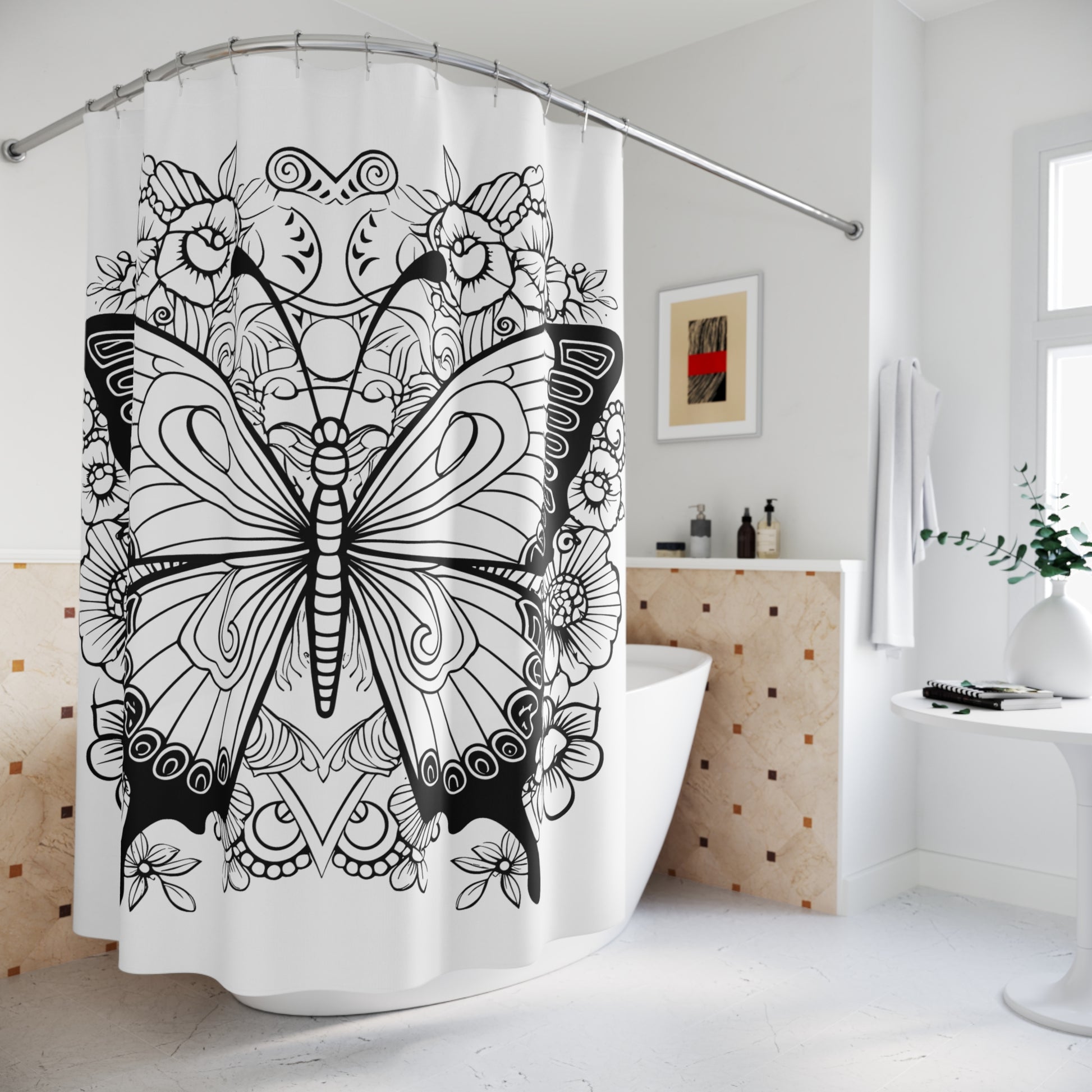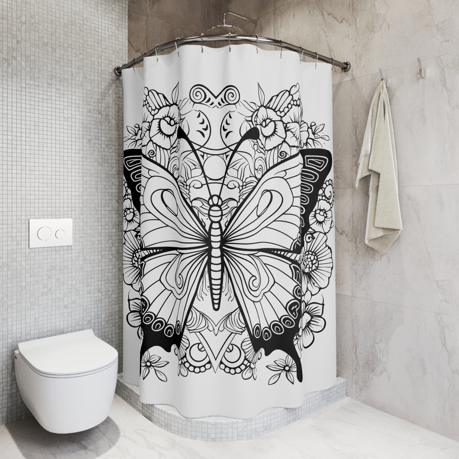 Turn any bathroom into a personal haven, these Butterfly Pen & Ink Art Shower Curtains are a perfect addition to your bathroom decor. Made with 12-stitch enforced eyelets and a 100% polyester material, they provide long-lasting decoration. Butterfly Pen & Ink Art Shower Curtain has a vivid design that stuns every time you look at it.
